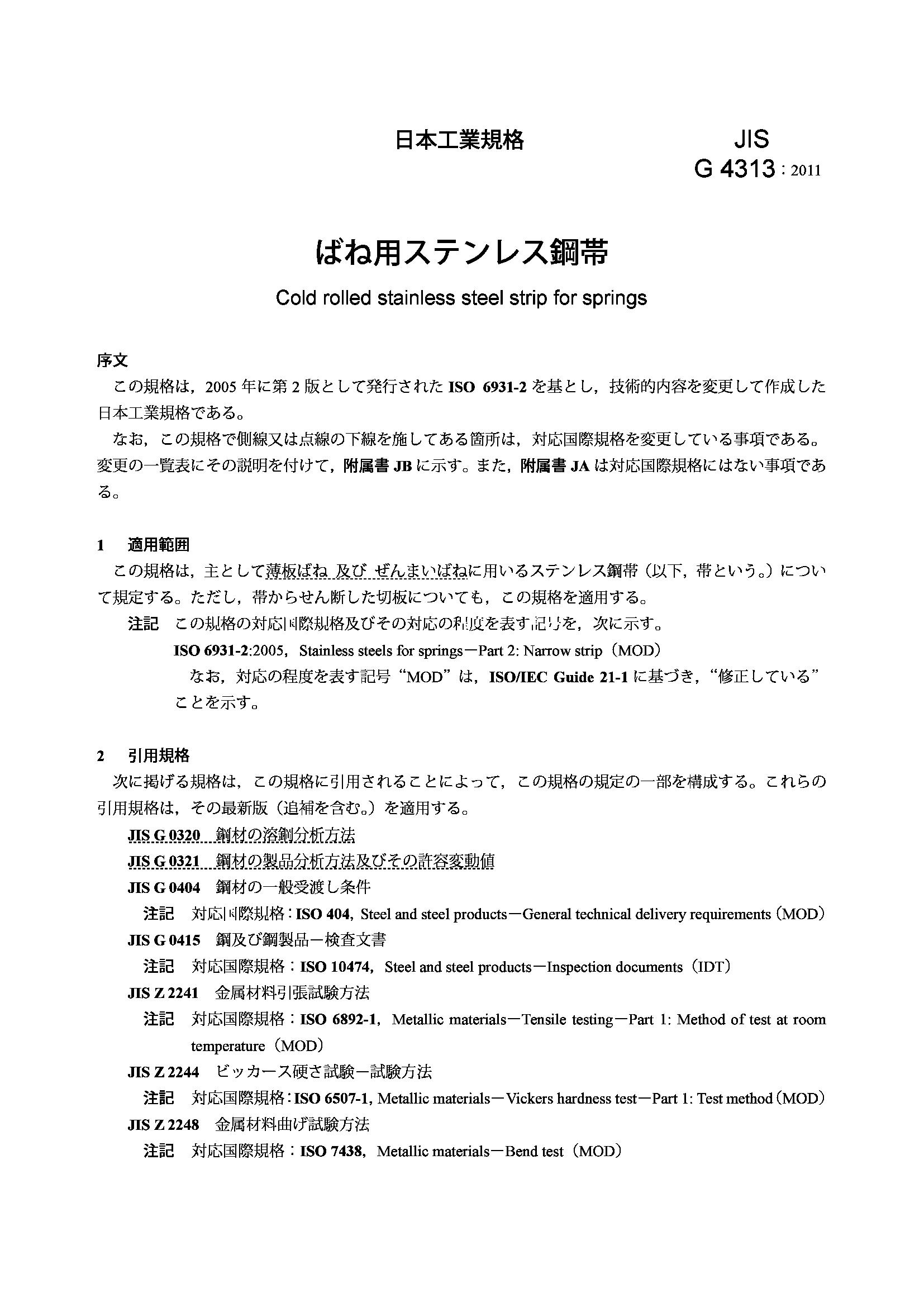 不锈钢JIS标准说明JIS-G4313:2011-Cold-rolled-stainless-steel-strip-for-springs